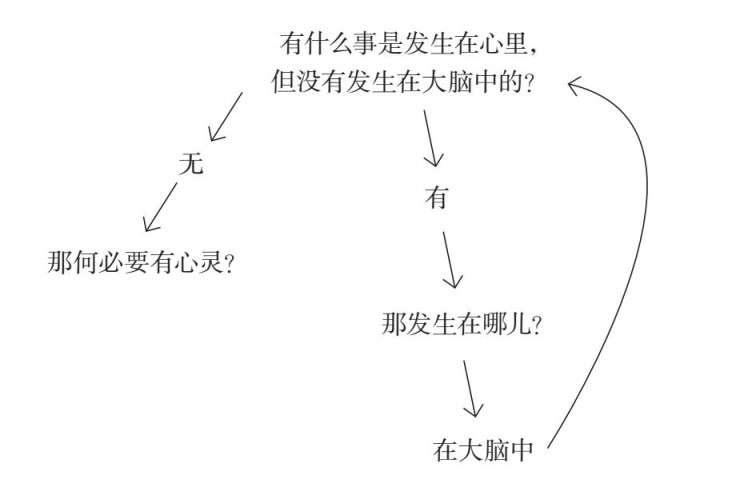 到底在这个漫长而曲折的旅程中,有没有哪个步骤(例如在这个神经元传到下个神经元的那一瞬间)让心灵介入干预,并决定下个神经元要不要放出信号?有没有任何的实质动作甚至是某个电子的移动,是出于“恐惧”这种主观体验,而不是因为前一个电子的运动?如果没有这种运动——每个电子的运动都是因为先前其他电子的运动——那我们究竟为何需要体验到恐惧?我们对此一无所知。