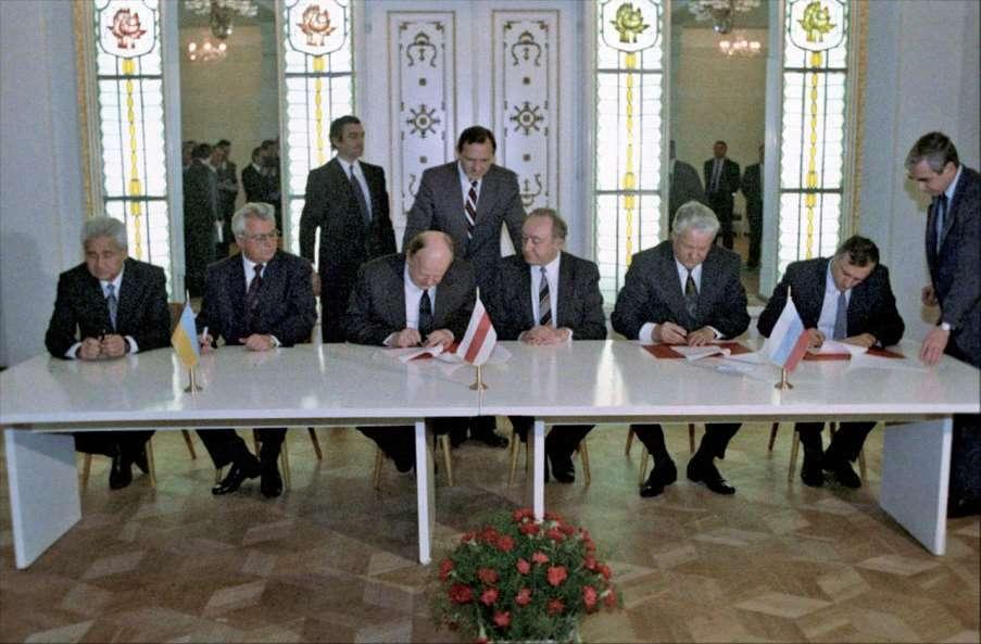 图19 签署《别洛韦日协定》。笔碰上了纸,苏联便消失无踪