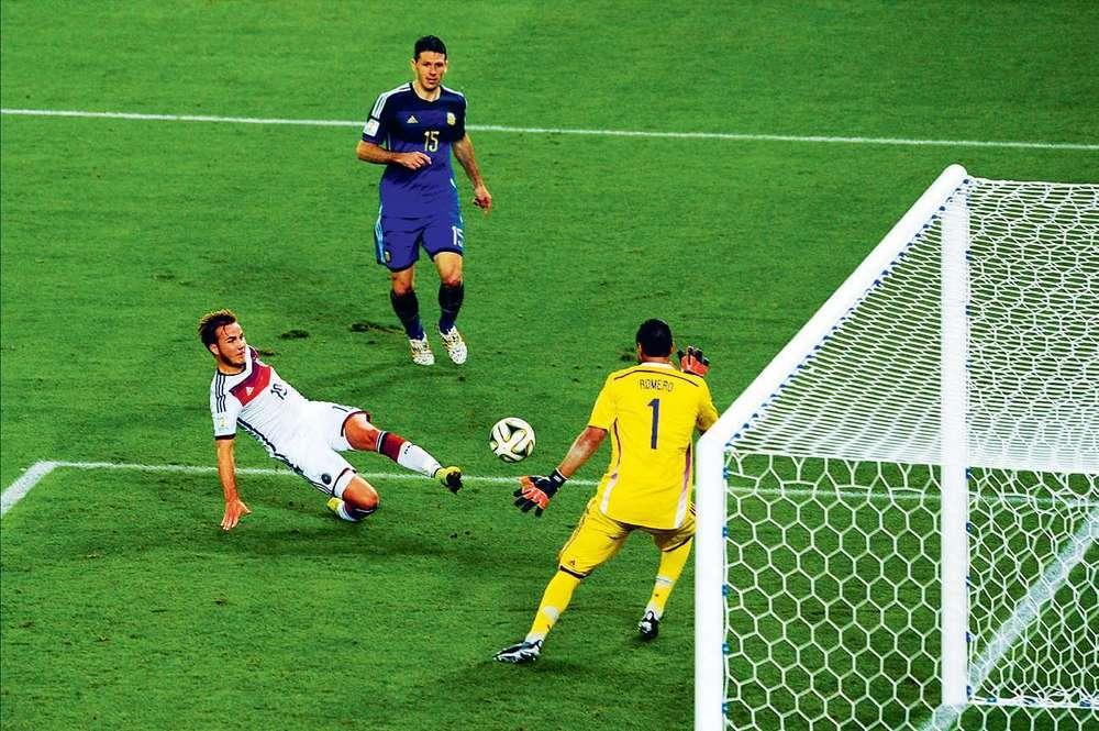 图8 马里奥·格策决定性的进球,让德国队获得2014年世界杯冠军。比赛地马拉卡纳体育场的草坪