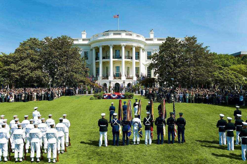 图7 欢迎英国女王伊丽莎白二世仪式,位于白宫草坪